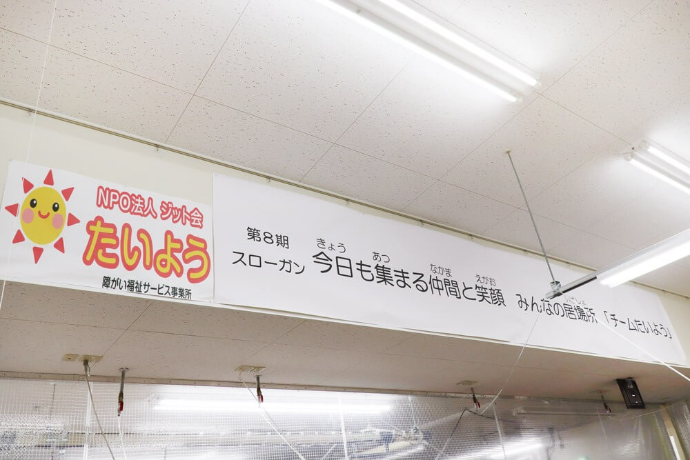 たいようは、「仕事を通して社会に貢献したい」「スキルアップしたい」と思うハンディキャップを持つ方々が、喜びを持って働くことができ、またご家族も安心して任せることができる、地域に必要とされるアットホームでぬくもりのある事業所です。