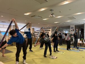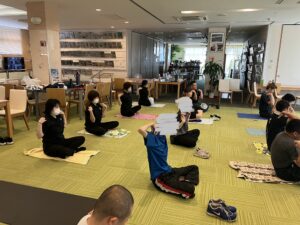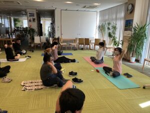 今回はメンバー11人、職員6人が参加してジット本社の2階を使ってヨガを楽しみました。
