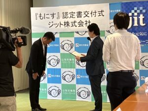 先日、親会社であり、一緒に働かせていただいているジット株式会社で「もにす認定交付式」が行われ、山梨労働局から認定書が交付されました。